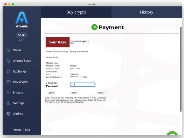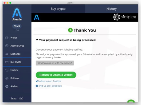 Atomic Wallet will process your payment request after